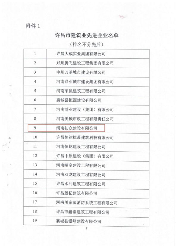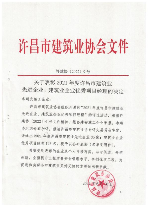 關(guān)于表彰2021年度許昌市建筑業(yè)先進(jìn)企業(yè)、建筑業(yè)企業(yè)優(yōu)秀項(xiàng)目經(jīng)理的決定