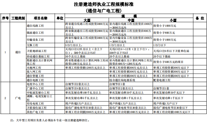 注冊建造師執(zhí)業(yè)工程規(guī)模標準(二)